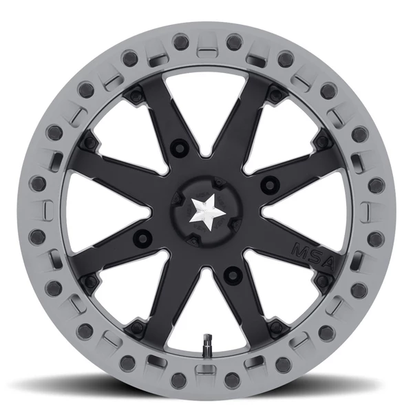 Love the MSA Wheels M21 Lok beadlock wheel but wish it came in a satin black? You’re in luck with the release of the M31 Lok2. After a huge request from their enormous customer base to come out with a full satin black option, MSA Wheels not only listened but gave the new M31 Lok2 a timeless facelift. The M31 Lok2 is available in thick satin black paint and matte grey on the ring. The updated ring is made of durable billet aluminum and engineered with holes to make cleaning up your machine a snap. One of the biggest problems with beadlock wheels is after you tear the trail up, debris builds up behind the ring. The all new M31 Lok2 ring solves this dilemma forever, incorporating twenty specially designed wash out holes to ensure your wheels stay clean on and off the trail. Backed by a full lifetime structural warranty, you bend it or break it, we replace it.