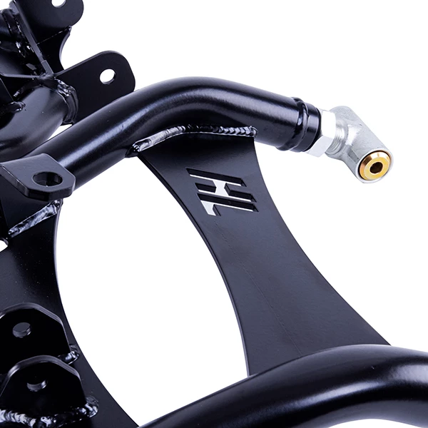 We maximized ground clearance by strategically arching the lower control arm with double bends. This unique design allowed us to get an additional 1.75” of ground clearance to avoid impacting those nasty trail obstacles. These bends maintain the factory geometry, which helps reduce wear on components like axles.
