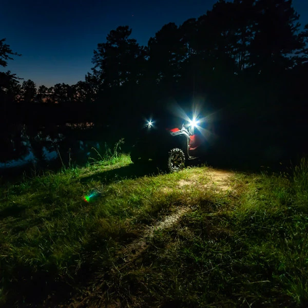 A CAST ALUMINUM HOUSING with IP68 water-resistant rating. DUAL COLOR MODE features Green Night Vision for better visual acuity at low light levels and White for bright illumination when needed. WHITE LEDs: Chips: 3x 11.9W Cree XBD Lumens: 565LM GREEN LEDs: Chips: 3x 6.6W Cree XBD Lumens: 266LM